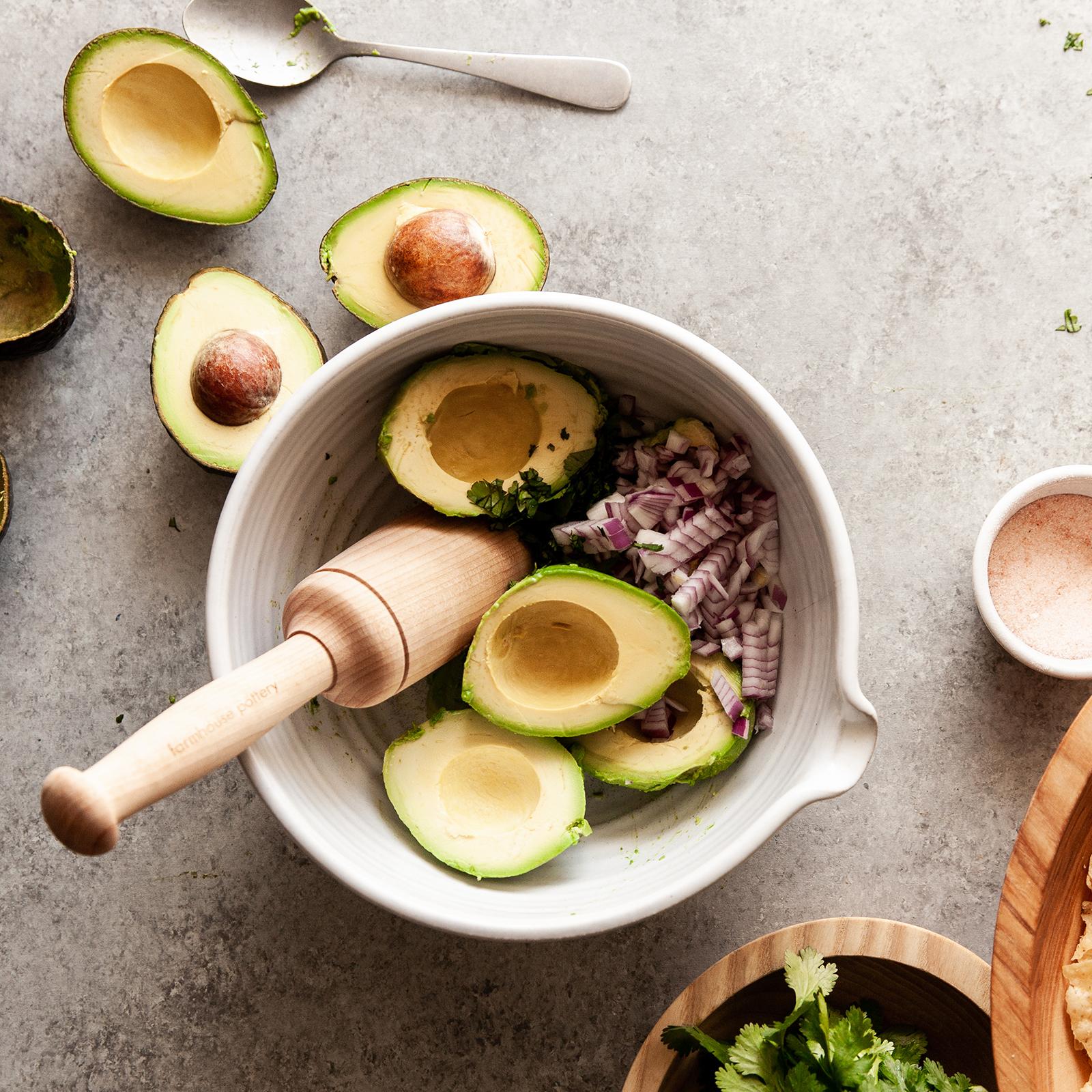 This modern stoneware piece has proven to be a multi-purpose tool in any farmhouse kitchen. Mash up homemade guacamole, muddle fruit for a cocktail or mix up your favorite creation.
