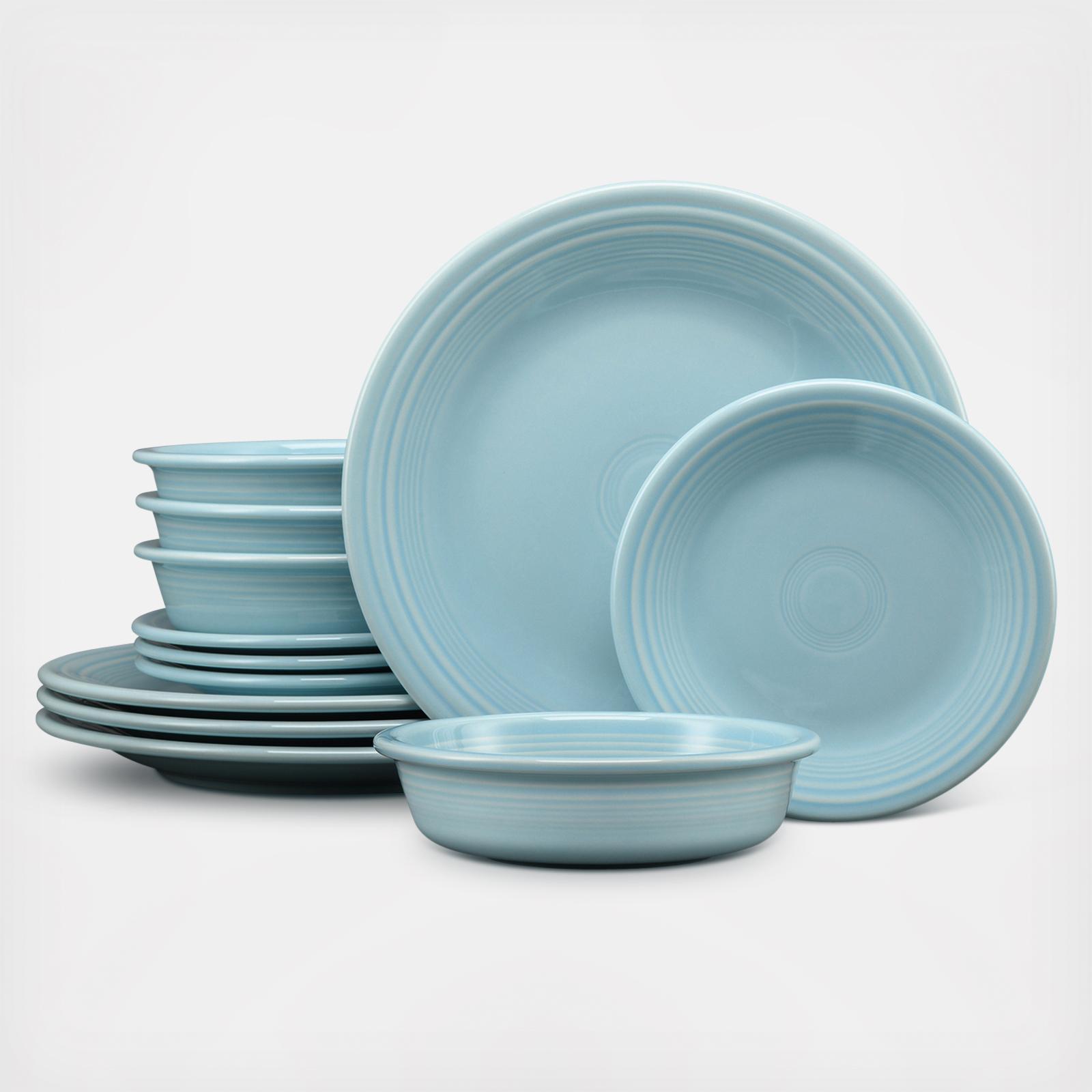 The Fiesta Classic Rim 12-Piece Starter Dinnerware Set offers a complete service for 4, bringing timeless style and versatile functionality to your table. This set making it ideal for everyday meals, family gatherings, or special occasions. Perfectly sized for everything from main courses and salads to snacks, desserts, and cereals, each piece blends vintage charm with modern appeal. The signature concentric Art Deco circles of the dinner plate add a retro touch, while the smaller plates and bowls are perfect for serving, snacking, and entertaining. Available in Fiesta’s iconic, vibrant colors, this set is easy to mix and match for every season or occasion, allowing you to create a colorful and stylish table setting for any meal.