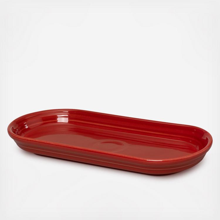 The Fiesta Oblong Serving Platter is a versatile and stylish addition to your Fiesta collection. Perfectly sized for serving a variety of dishes, it's ideal for pairing with your favorite Fiesta mug as a soup-and-sandwich combo plate. Use it to serve bread, cookies, desserts, appetizers, or charcuterie at your next gathering. Beyond the kitchen, this durable platter makes an elegant tray for soaps and lotions by the sink or as a decorative display for candles and small trinkets. Crafted from Fiesta's signature ceramic, it's microwave, dishwasher, and oven safe. Available in a vibrant array of colors, it's a must-have for both entertaining and everyday use!