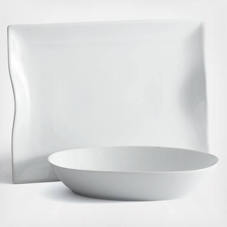 This sophisticated Everyday White Serving Bowl and Platter Set adds understated style to any dining occasion. Contemporary shapes in sleek porcelain give your tabletop a fresh, elegant look. Perfect for everyday use or formal entertaining, these serving pieces are ideal for bringing main courses and sides to the table.