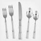 Flatware embodies a passion for design combined with a commitment to the finest materials. Made from heavy-gauge 18/10 stainless steel (the heaviest gauge used for tableware), each implement provides a comfortable heft and balance in your hand. An elegant accent that implies south seas adventor and tropical decor, a contemporary accent to any dinner party.