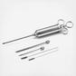 Become a marinade master and add pizzazz to steak, brisket, pork, poultry, lamb, and more with this high-grade 6-piece stainless steel meat marinade injector set. Three marinade injection needles allow for deep penetration and even distribution. Use the wide tip needles for chunky marinades, and holed needles for liquids. Durable and sharp, the injector needles puncture any meat or poultry with ease and won't easily clog, bend, or break. The 3-ring handle gives you a better grip for optimum comfort and precision injection. Super quick and easy to disassemble, this premium quality meat marinade injector set comed with 2 cleaning brushes and is top rack dishwasher-safe, making cleanup a piece of cake! Infuse great-tasting flavor and create flavorful and perfectly cooked roasts, turkey, barbecue, and smoked meats. A gift every master chef or grill enthusiast would be happy to receive!