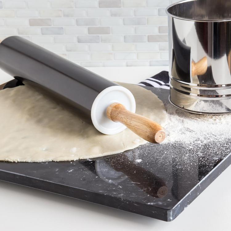 This beautiful Black Marble Pastry Board is perfect for any baker! Cool and smooth, marble provides an ideal surface with its natural non-stick properties. No need to add an abundance of flour down before rolling or kneading. Suitable for biscuits, pies, tarts, pizzas, pastries and many more. This board is elegant enough to be kept out on display in your kitchen when not in use. The board itself measures 1/2" thick. Plastic feet on the bottom provide protection for your countertop. Exceptional results with any type of dough are promised with this marble pastry board!