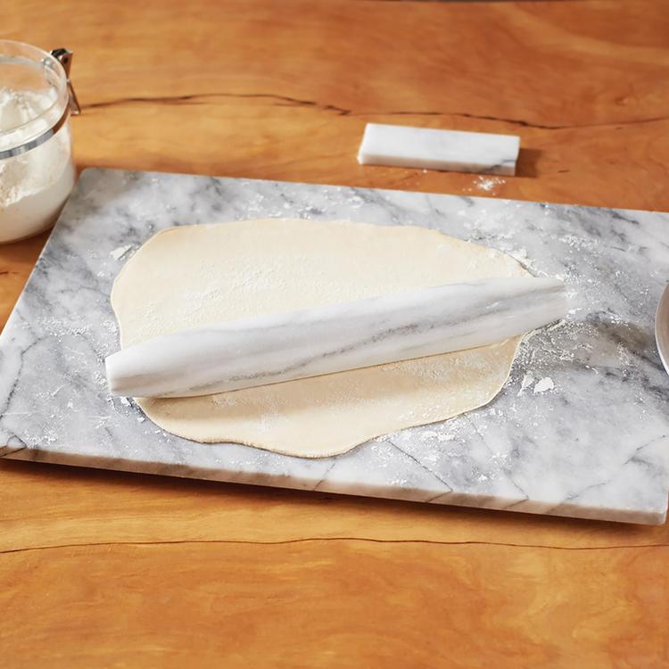 To roll out dough to the correct thickness you need, use the right rolling pin for the job! With its classic marble construction, this Tapered Rolling Pin measures in at a large length of 12 inches. Tapered from the middle to both ends for maximum control, it rolls out dough thinly by pushing it from the middle, ideal for proper pie crusts that are both tender and flaky. Also great when making homemade pizza, the pin rotates easily around the dough for creating perfect circles. Keep your dough's fate right at the palm of your hands.