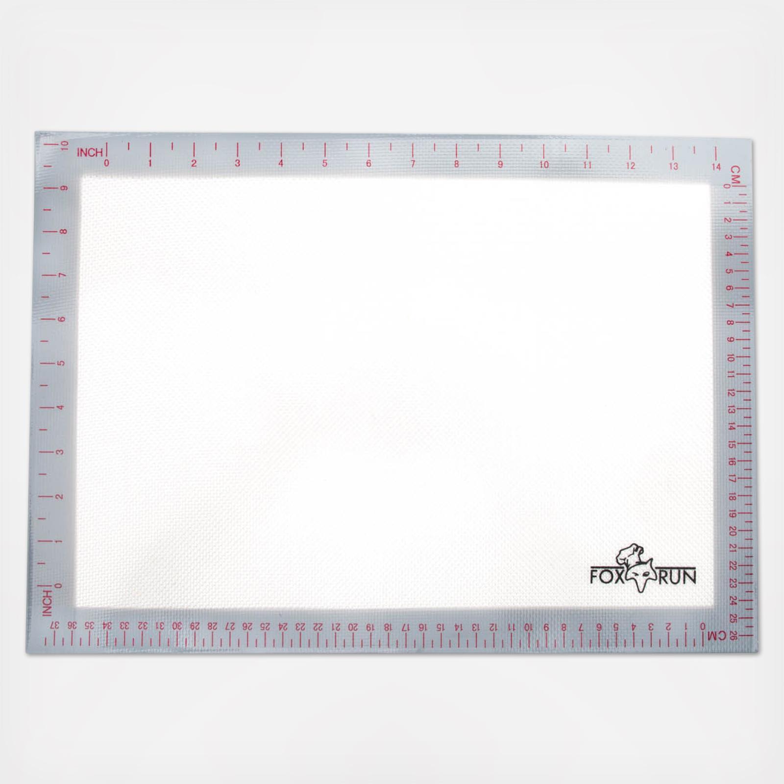Eliminate the need for parchment paper and greasy cooking aids with this Silicone Bake Mat! This mat is made from food-grade silicone and is reinforced with glass weave. Designed for all oven types, the non-stick baking mat provides even heat distribution to your baked goods to prevent any burning. To use, simply place bake mat on sheet pan writing side up. It features a handy measurement guide with inches and centimeters on the border, with the Fox Run logo in the corner. The mat can withstand temperatures from -40 to 480 degrees Fahrenheit. It's non-stick finish makes clean-up a breeze. An ideal surface for dough prep, and a perfect accessory for any baker!