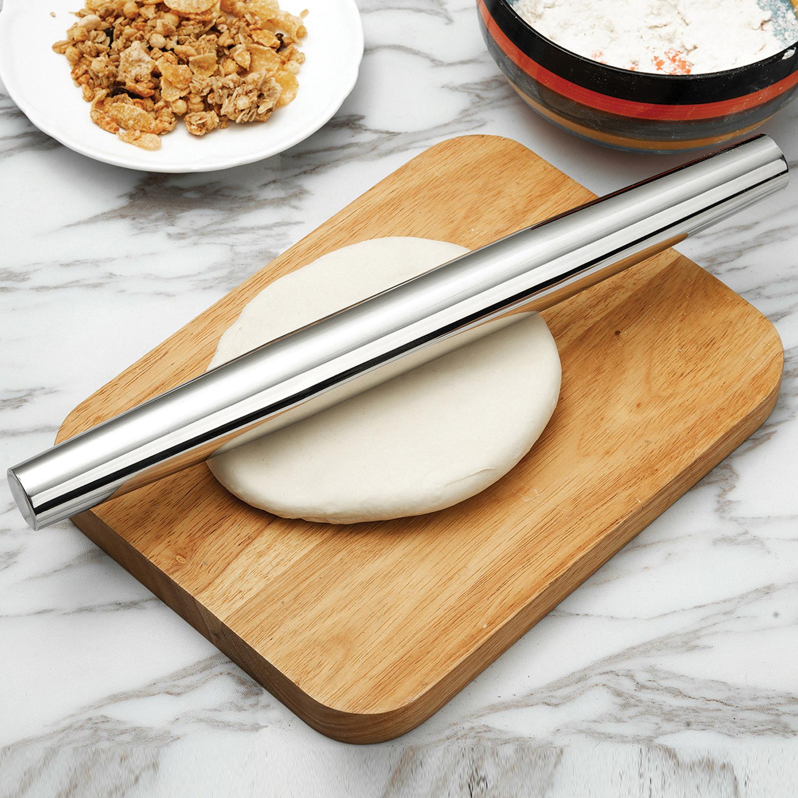 To roll out dough to the correct thickness you need to use the right rolling pin for the job! Both beautiful and functional with its one piece 18/8 stainless steel construction, this thin rolling pin is a French style rolling pin measuring in at a generous length of 18 inches, and 1.25 in. diameter at the widest point. Pre-chill the stainless steel pin to help keep the dough cool while rolling, and prevent dough from clinging. Tapered from the middle to each end for maximum control, it rolls out dough thinly by pushing it from the middle, ideal for proper pie crusts that are both tender and flaky. Also great when making homemade pizza, the pin rotates easily around the dough for creating perfect circles. Keep your dough's fate right at the palm of your hands.