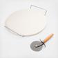 A must-have for pizza lovers! This complete 3-piece Pizza Stone Set includes everything you need to bake the best pizza on the block! The 12.5 in. round pizza stone heats evenly and absorbs excess moisture to make lighter, crispier crusts. Once out of the oven, use the pizza cutter to cleanly slice your pizza and place on the rack for cooling and serving. This set is ideal for homemade or frozen pizzas, and even for baking crusty bread, rolls, biscuits, cookies, tortillas and more! Safe for microwave, convection and regular ovens. Use this pizza stone set to get a perfect crispy, pizzeria-style crust every time!