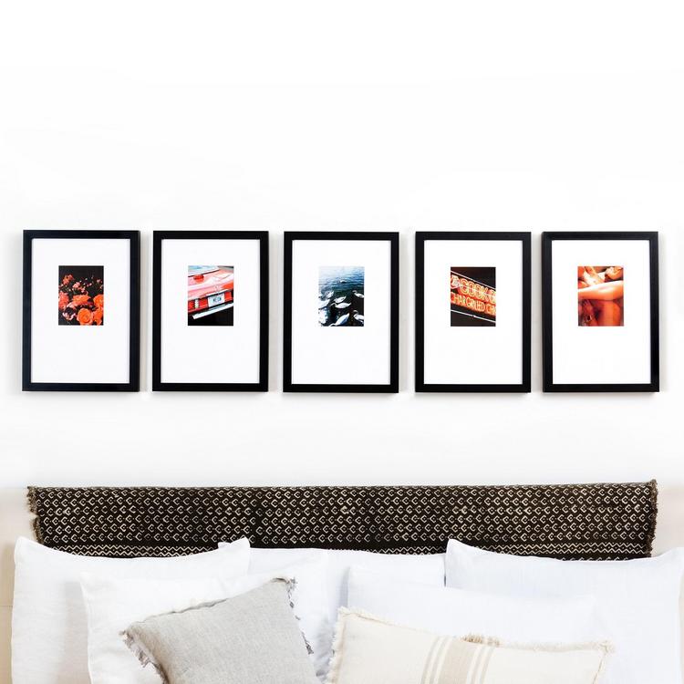 We’ve designed The Line for small photos so you can upload pics straight from your feed. The bottom-weighted mats make for a custom, editorial feel. We kept the individual frames on the small side so they look great above tall and short headboards alike. At 54” wide, The Line gallery wall is exactly the width of a Full mattress, so it fits neatly above Full, Queen, and King beds.