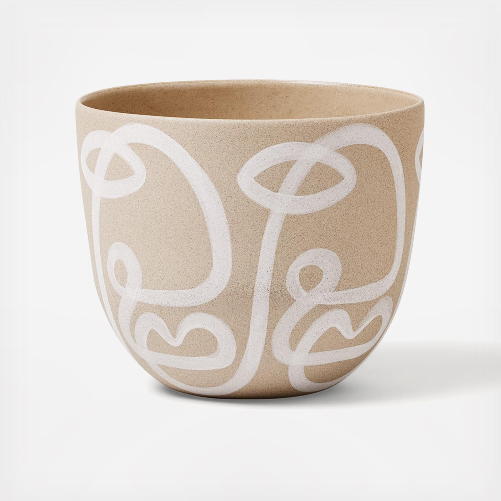 Handmade stoneware planters with bold, graphic outlines and a matte finish. Elevate your gardening game with our handmade stoneware planters. Designed to add character and movement to your environment, these pieces complement your greenery with playful patterns. The matte exterior contrasts beautifully with the clear glazed interior, combining style with functionality.