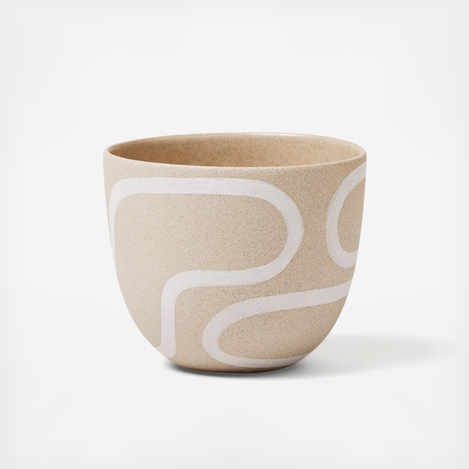 Hand-painted earthenware planters with a bold, modern black outline design. Elevate your gardening game with Franca planters. Designed to add character and movement to your environment, these vessels complement your greenery with playful patterns. The Outline is the crisp, light counterpart to our color block pattern. Celebrate each brushstroke with this design - it highlights the hand-painted nature of our work and the beauty of expressive, intentional craftsmanship.