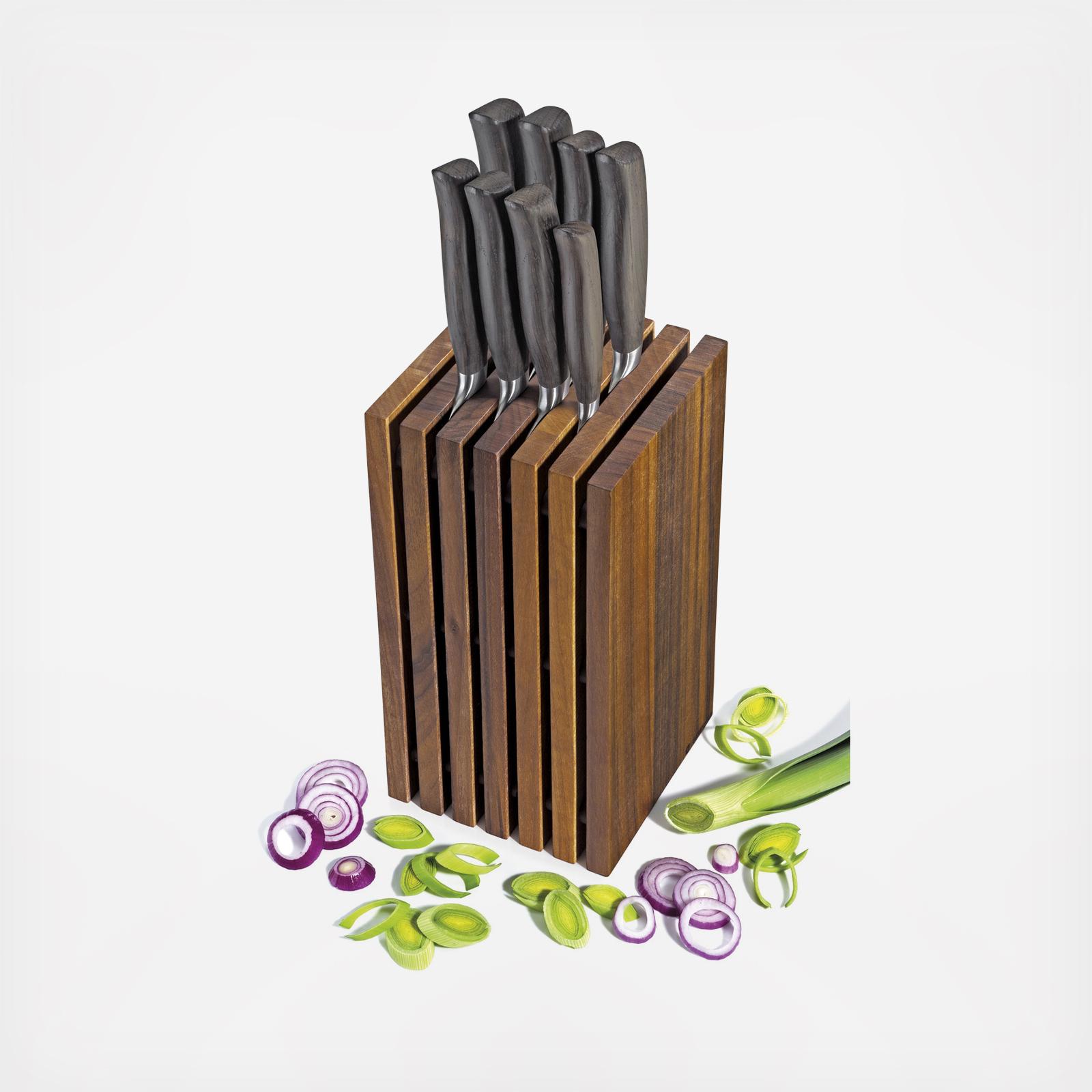 Slotted Knife Block: Enhance your kitchen with our chic, space-efficient knife storage solution. Neatly arrange up to 12 knives, accommodating blades up to 9.8 in. long. Crafted from wood, its elegant and enduring design brings sophistication to your culinary area. Maintenance is effortless - just wipe clean with a damp cloth.