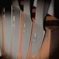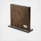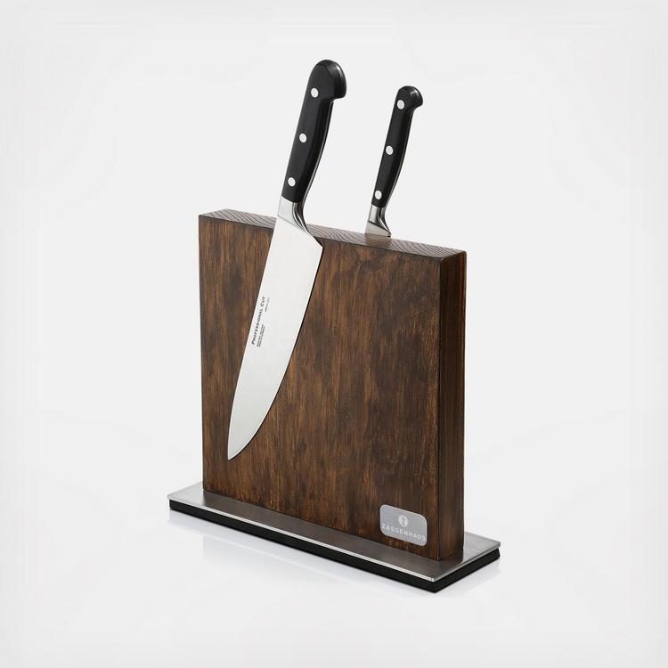 A timeless design object for your kitchen counter. Have your favorite knives within arm’s reach. Invisible magnetic strips securely hold up to 10 knives (9” max. blade length). Sanitary (unlike dropping the knives into the slots of conventional blocks). Solid wood and stainless steel base that will not scratch your counter.