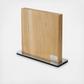 A timeless design object for your kitchen counter. Have your favorite knives within arm’s reach. Invisible magnetic strips securely hold up to 10 knives (9” max. blade length). Sanitary (unlike dropping the knives into the slots of conventional blocks). Solid wood and stainless steel base that will not scratch your counter.