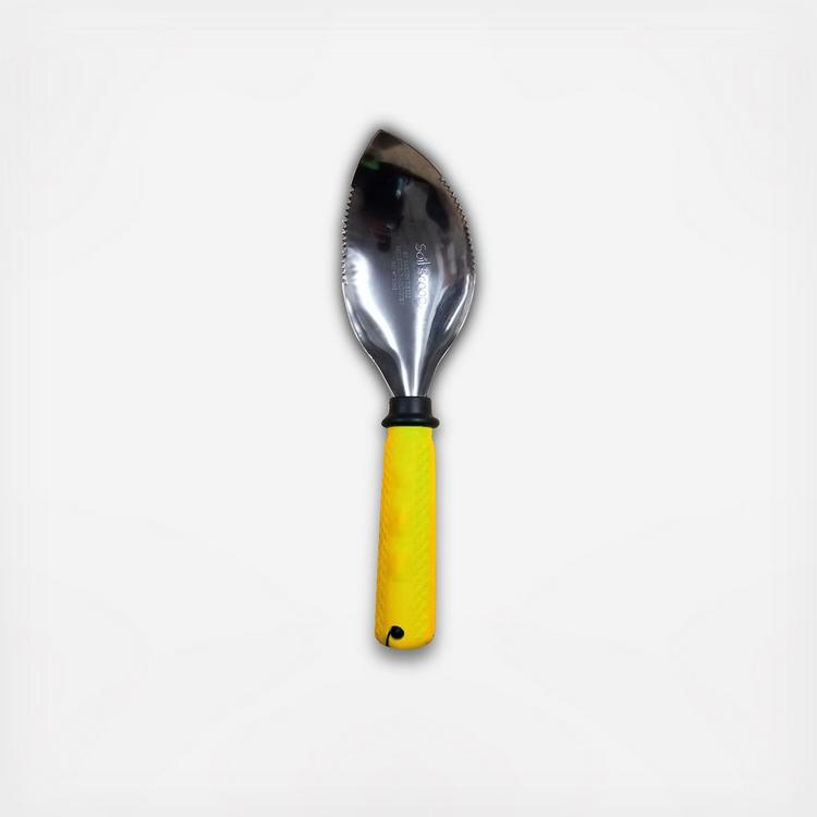Great for digging holes, cutting roots, making seed furrows, and transferring soil. The serrated edges cut through roots and are great for carving pumpkins. Even use to clear BBQ grill grates and lift charcoal.