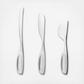 Perfect for a cheese board and everyday use, this elegant set of three knives carries the organic shapes that define Georg Jensen's Alfredo collection. Designed with a flat handle that ensures a comfortable grip, the set includes a long knife with a thin blade perfect for soft types of cheese, such as brie; a medium-sized one for spreads like cottage cheese; and a smaller knife to break up bigger pieces of cheese such as parmesan. The knives are dishwasher safe, however we recommend washing them by hand.