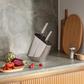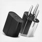 Crafted from stainless steel, this black knife stand from the Alfredo collection is the perfect addition to any kitchen. Practical and crafted to last, the piece allows you to store your kitchen knives thanks to the black fibre rods that keep them neatly and safely in place. The stand can hold up to five knives (up to 22cm in length) and is a perfect fit for the Georg Jensen Sky knives collection. What's more, the fibre rods can be easily removed and washed.