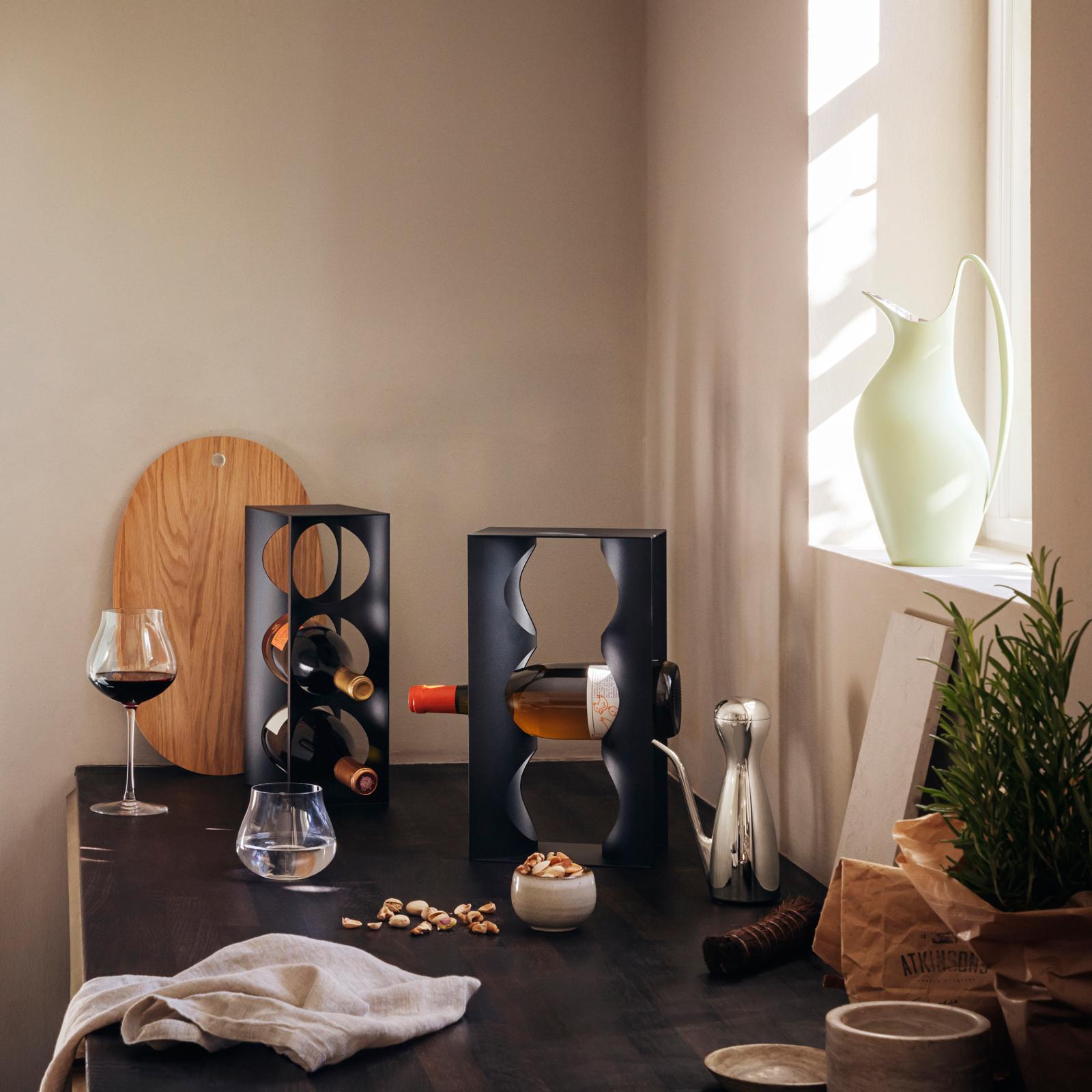 Showcase your favourite bottles in this handsome wine rack from the Alfredo collection. Crafted in lightweight stainless steel and coated, the design holds up to three bottles and can be placed both vertically and horizontally anywhere in the kitchen and dining room. The racks are not designed to be stacked or fixed to the wall.