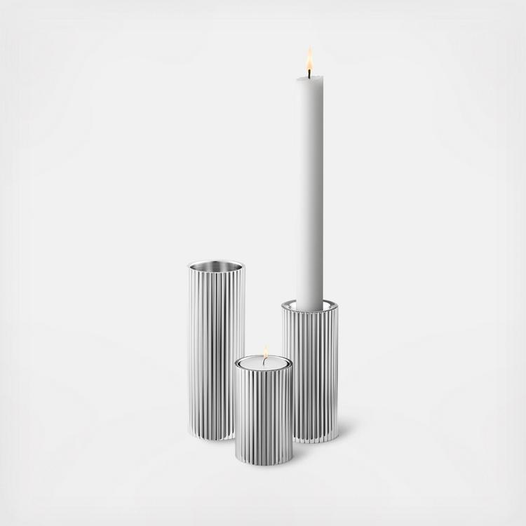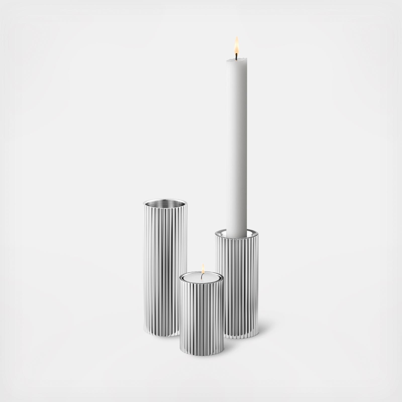 Bring some true Scandinavian modernist style to your home with this set of three stainless steel candleholders. As versatile and practical as they are beautiful, they work with taper candles or tea lights when turned upside down. Place individually around the room or group together on a dining table, windowsill or mantlepiece for a relaxed ambience. The three candleholders are skillfully crafted from stainless steel with a mirror polished finish.