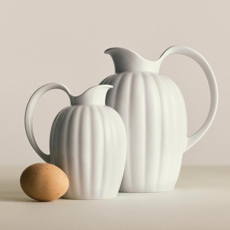 The renowned Bernadotte pitcher—first designed in sterling silver and later crafted in mirror-polished stainless steel—now comes in white porcelain, offering a fresh interpretation of a classic design. This piece joins the coveted Bernadotte collection, featuring iconic designs by Swedish designer Sigvard Bernadotte, who began his collaboration with Georg Jensen in the 1930s.