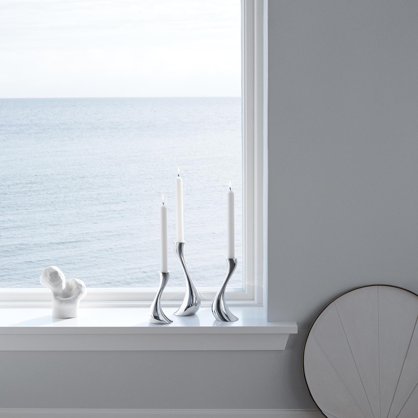 Undoubtedly one of most recognisable and iconic candleholders, the Cobra’s sensual fluid shape has captured the hearts of many. Seemingly defying gravity, the lightness of the candleholders has a magical effect - one that is doubled when the flickering candlelight is reflected in the surface. This set of three candlesticks - small, medium and large - form a beautiful natural group that seems to sway this way and that. Much like a cobra itself. The Cobra’s designer, German-born Constantin Wortmann believes that his work shouldn’t be taken too seriously and should evoke an emotional response. Form follows emotions is his mantra and the success of this collection proves his point. Made from stainless steel with a mirror-polished finish, the three candlesticks are durable, weighty and stable.