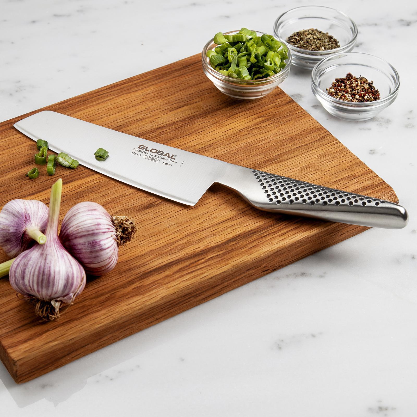 A Japanese-style square-tip knife that is great for chopping meat, root vegetables and big prep jobs. A popular alternative to the Santoku.