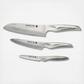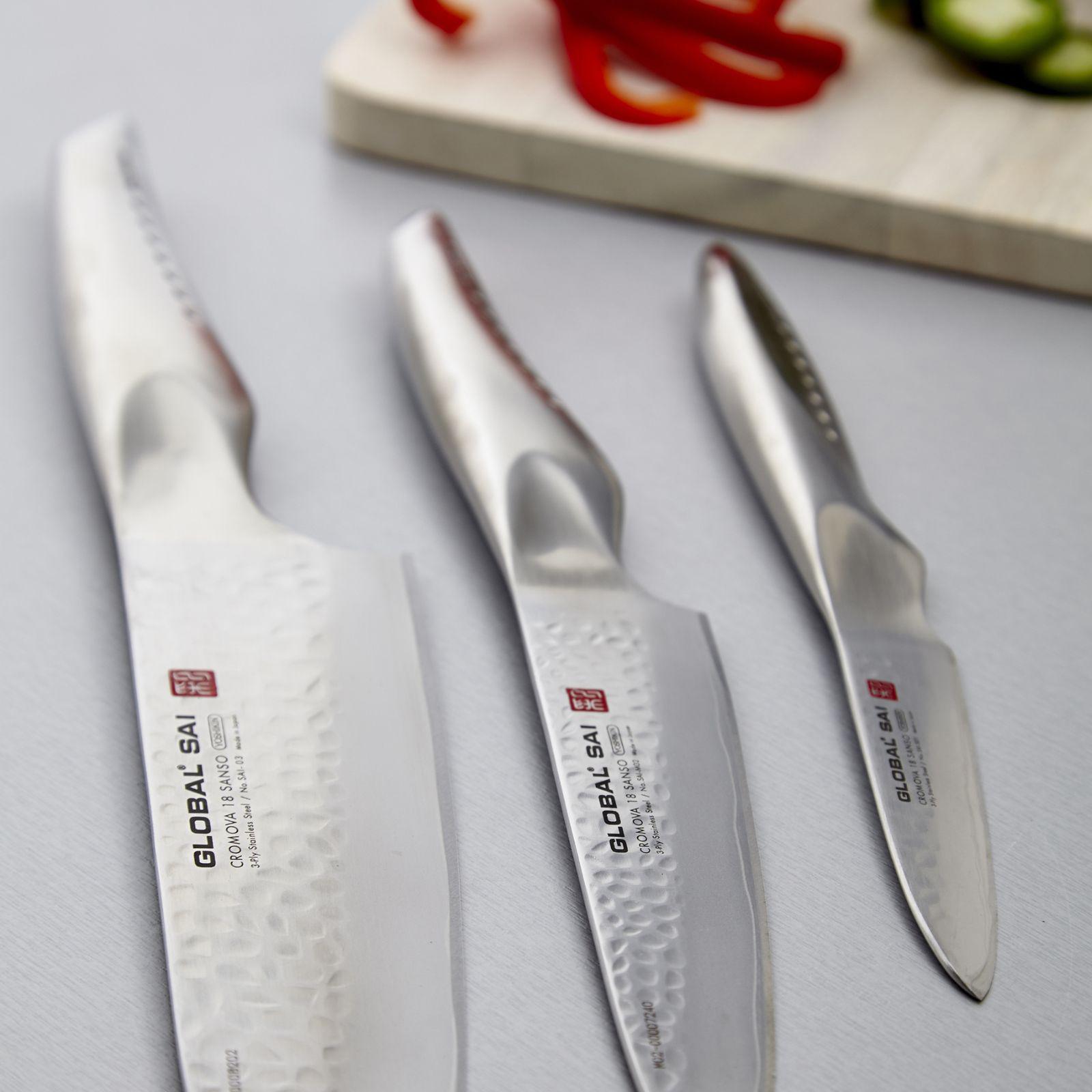 Global Sai, designed by renowned industrial designer Komin Yamada, pays homage to the Samurai tradition of sword making. The slightly longer curved ergonomic handle provides a comfortable grip and features 7 signature black dots which represent the 7 Samurai codes of honor and moral principles. A great starter set for any kitchen.