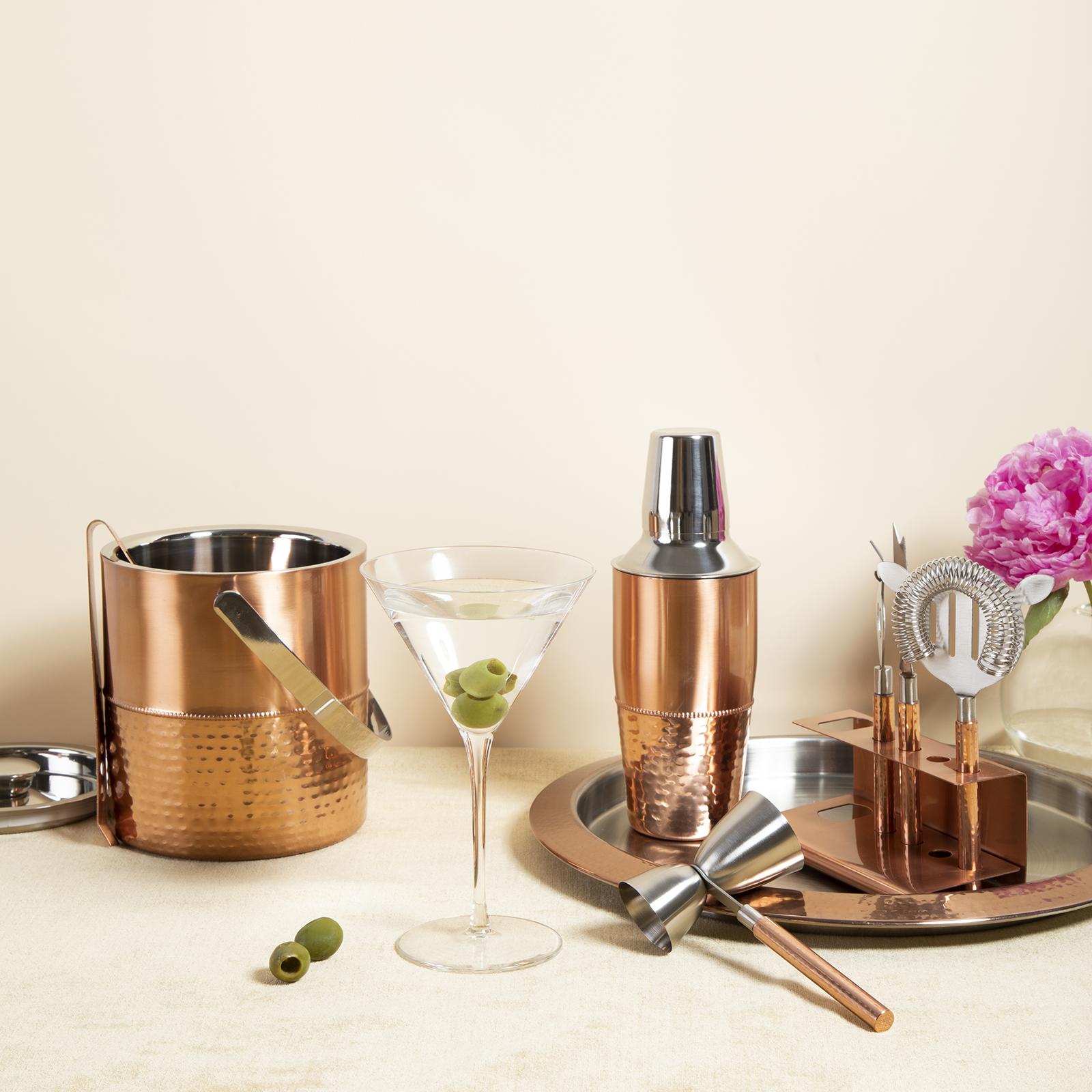 A great starter set for any bar enthusiast, this stylish 9-Piece set is made with cooper and stainless steel, and is excellent for mixing drinks and complementing your bar!