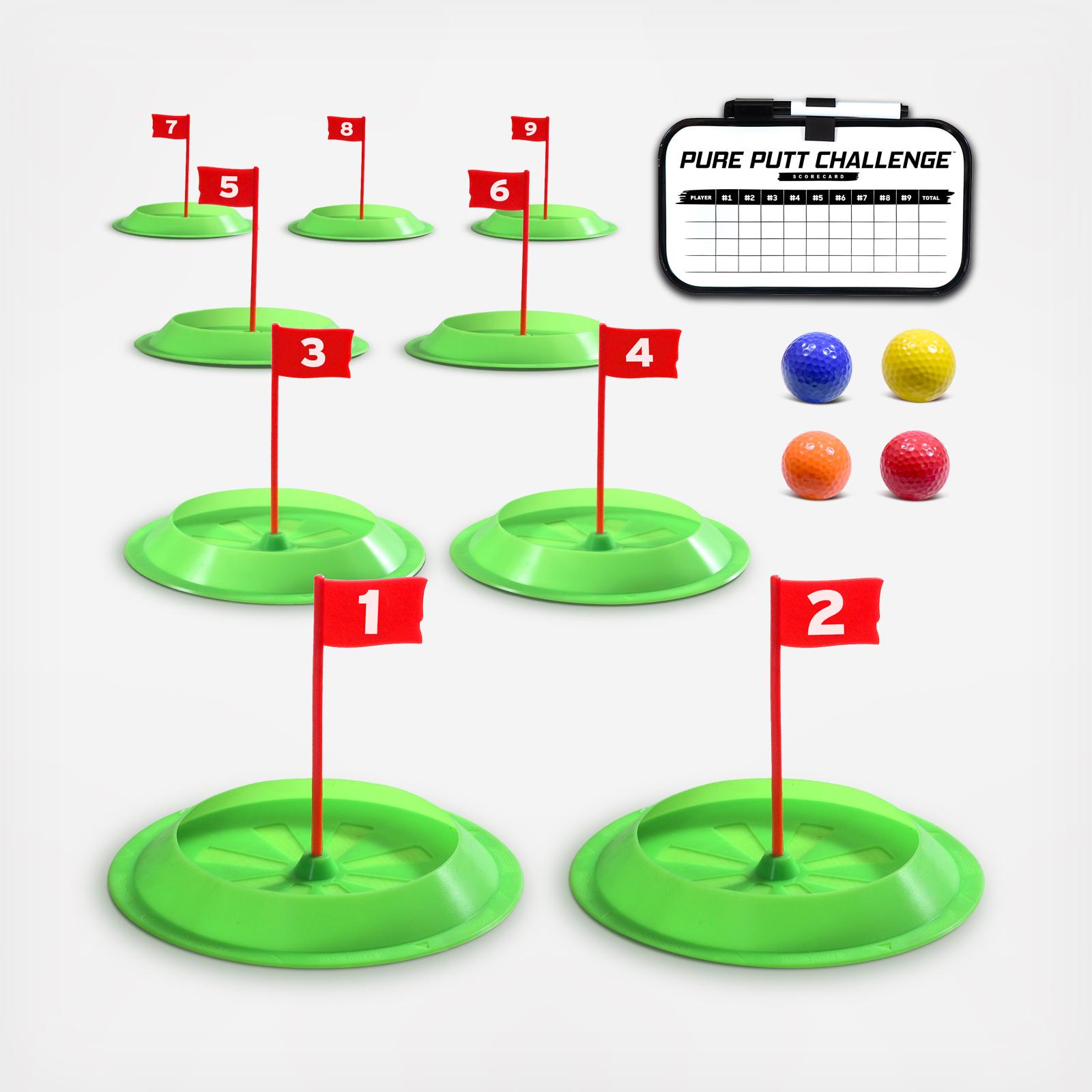 Pure Putt Challenge Mini Golf is an exciting new golf game that lets players create their own mini-golf course! Setup the 9 cups to create your own course at home, the office or on the green and then compete to see who can shoot the lowest score over 9 holes. The routing options are endless as you can decide how easy or hard to make each hole!Step up to the Pure Putt Challenge today!