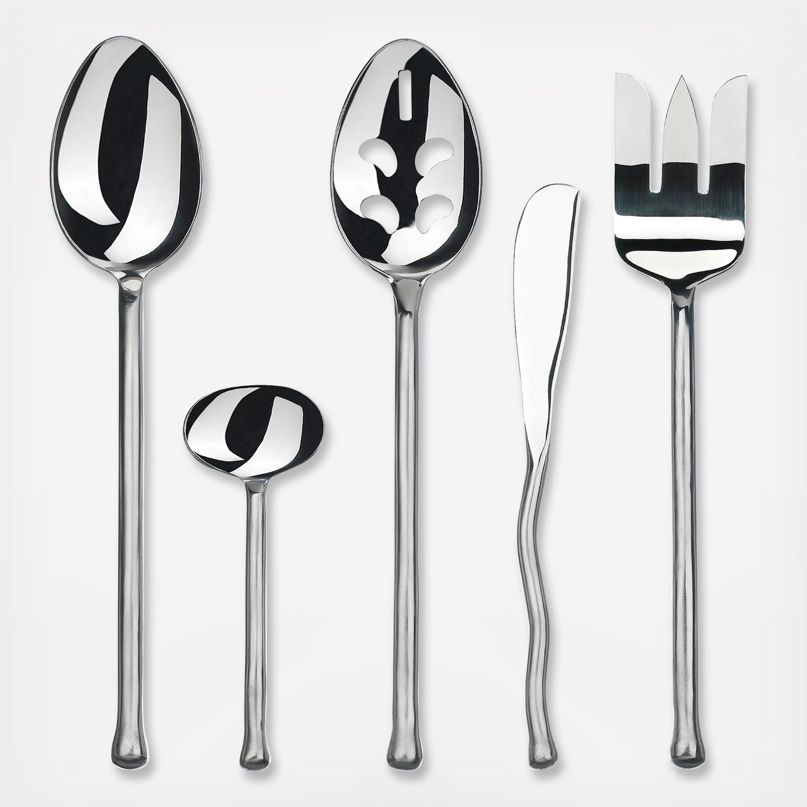 Exotique Platinum 5-Piece hostess set is a perfect accessory to the Exotique Platinum 20-Piece flatware set - inlcudes a serving fork, serving spoon, slotted spoon, sugar spoon and spreader.