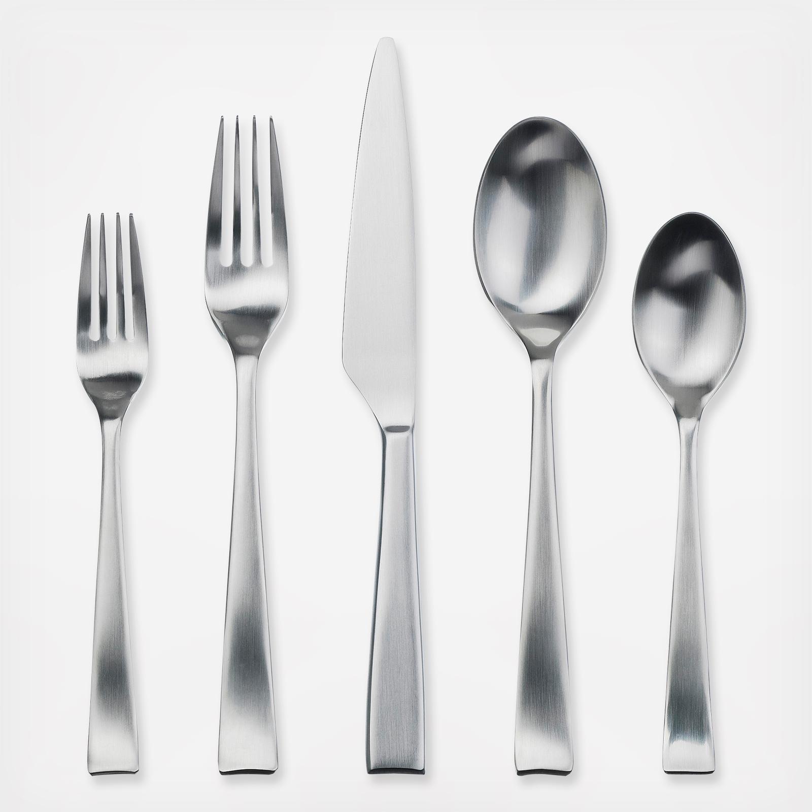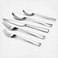 The Hotel flatware sets are a strictly 5-star affair. Its modern flatware matte finish, elegant clean lines, and distinctly angular knife design add an industrial edge to the Hotel line of stainless steel flatware. In a class of its own, Hotel stainless flatware needs no brand name to spell of its high quality -- its 3.0/2.8mm gauge speaks for itself when you see it and touch it. Restaurant flatware that you can use in your home, Hotel flatware will withstand the busiest dining room for 25-years, guaranteed. There's no need for a kitchen hand for your Hotel; this set is diswasher safe. 25-year warranty.