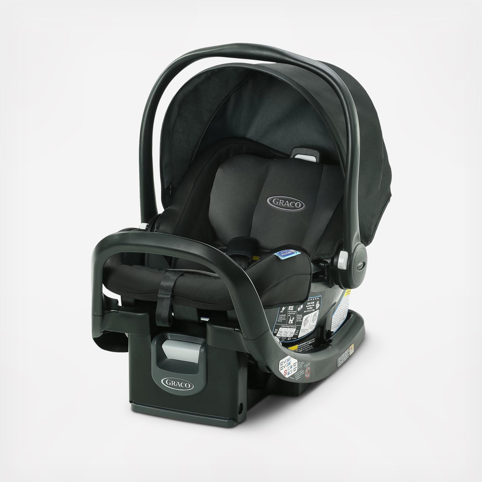 Graco SnugRide SnugFit Infant Car Seat features an Anti-Rebound Bar, which provides an additional layer of rear-facing safety by limiting rotation of the seat and your child in the event of an impact. SnugRide performance helps to protect rear-facing infants from 4-30 lb and up to 32". From the makers of SnugRide, the SnugFit line of infant car seats pairs safety technologies with easy installation and comfort features for your little one. The headrest and harness can be adjusted together while your child is in the seat with the front-adjust No-Rethread Simply Safe Adjust Harness System. The 4-position adjustable base and an easy-to-read pendulum level indicator help with proper installation. Infant head and body supports offer a comfortable fit. The Silent Shade canopy adjusts quietly without disturbing baby. Create your own travel system or use in multiple cars: The SnugRide SnugFit attaches with a one-step secure connection to most Graco strollers and infant car seat bases. The car seat is Graco ProtectPlus Engineered to help protect in frontal, side, rear, and rollover crashes.