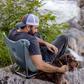 This three-legged, convertible chair is a perfect hybrid of Monarch and Mantis chairs. Its removable front foot can be used to give the chair stability like the Mantis, or removed to give it the hillside rocking functionality of the Monarch.