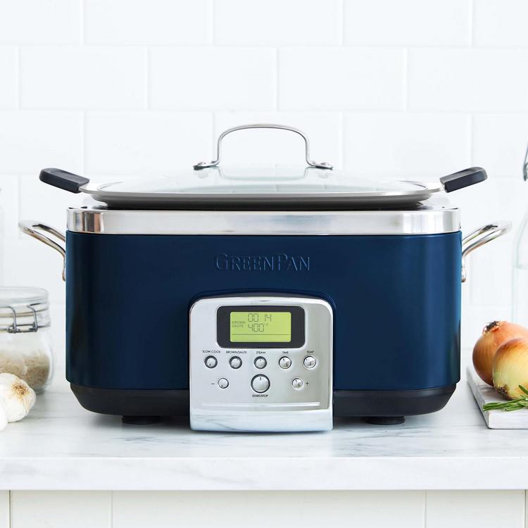 Flavor does not happen in an instant. Create tasty dishes and family-sized meals with massive flavor. Slow cooker creates mouthwatering tastes with the press of a button. Sear your food to start, then cook it low and slow to draw out maximum flavor. The large LCD screen makes finding your setting simple, while the striking body is a countertop stunner. Take your time while cooking, then clean up quickly with Thermolon volt, a healthy nonstick specially designed for electrics.