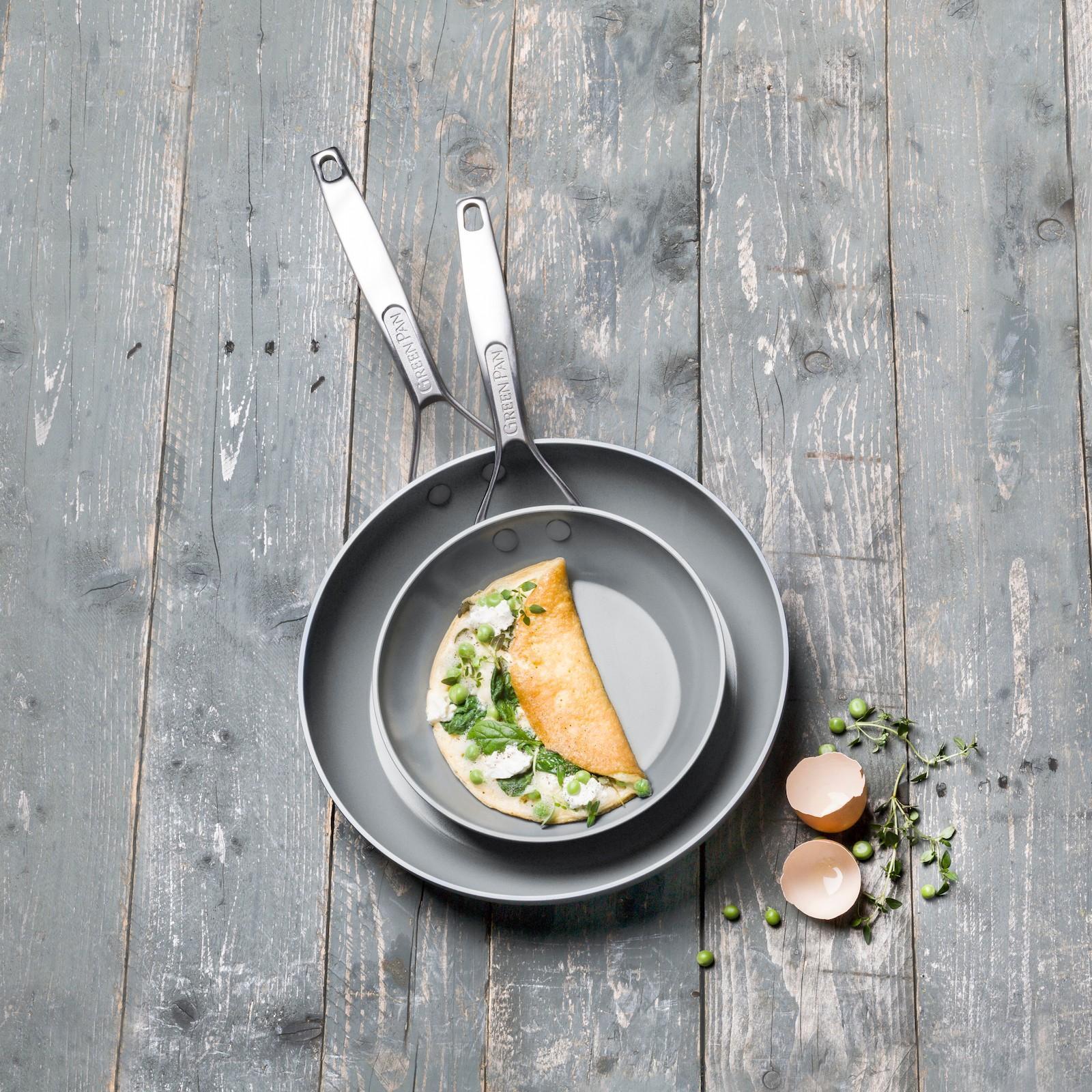 Paris Pro is made of durable hard anodized aluminum for even heat conduction and complete with a matte dishwasher safe coating. Eye catching ergonomic stainless steel handles are riveted for a strong hold, allowing for oven use. Each piece is coated with Thermolon Minerals healthy ceramic non-stick, now metal utensil safe, for an extra durable, healthy cooking surface for every meal.