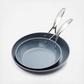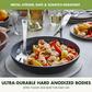 From GreenPan, the pioneer of healthy ceramic non-stick, comes the Valencia Collection - the cookware of your dreams! The durable hard anodized body allows for maximum strength and scratch resistance and is complete with Magneto technology, featuring ferromagnetic particles reinforced with copper in the base to give you superior induction efficiency and cooking results on all stove tops due to the improved base stability. Stainless steel handles allow your cookware to go swiftly into the oven and the dishwasher safe coating makes clean up stress-free.