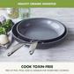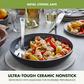 From GreenPan, the pioneer of healthy ceramic non-stick, comes the Valencia Collection - the cookware of your dreams! The durable hard anodized body allows for maximum strength and scratch resistance and is complete with Magneto technology, featuring ferromagnetic particles reinforced with copper in the base to give you superior induction efficiency and cooking results on all stove tops due to the improved base stability. Stainless steel handles allow your cookware to go swiftly into the oven and the dishwasher safe coating makes clean up stress-free.