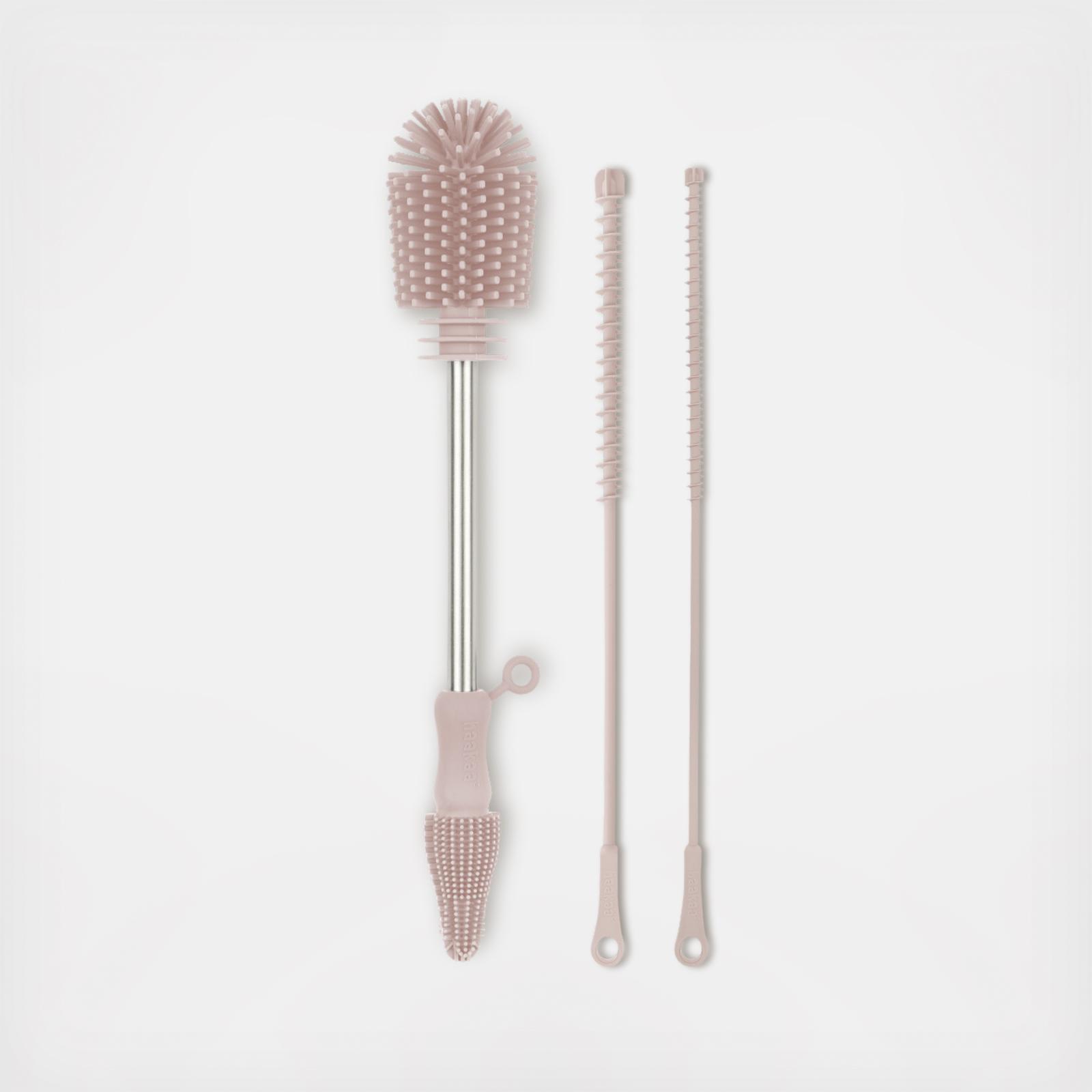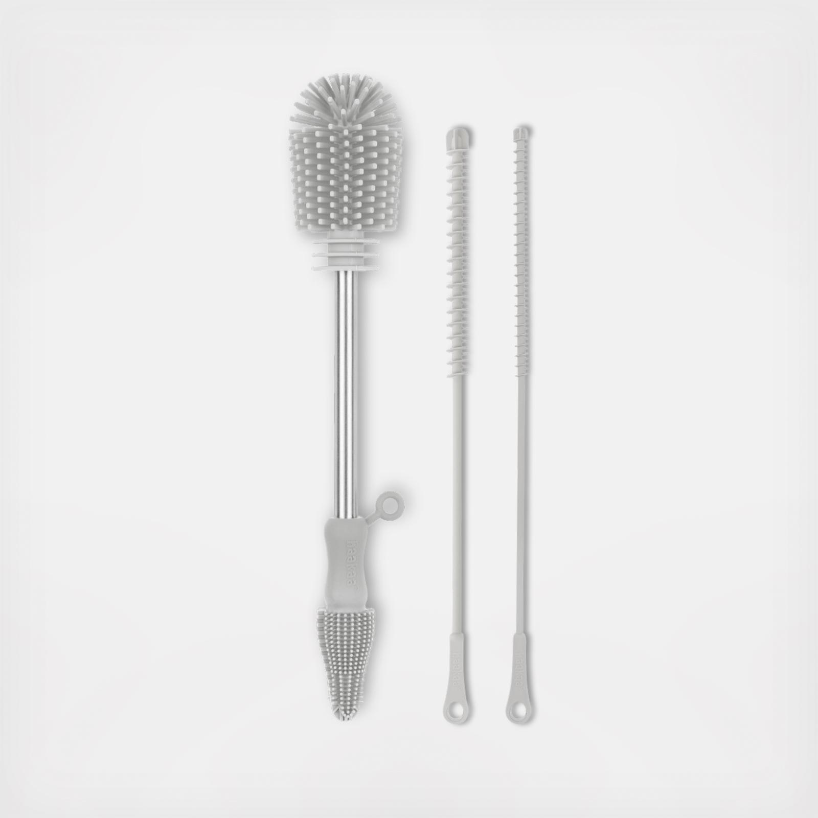 Clean and care for your baby and maternity gear with Haakaa's Silicone 3-Piece Cleaning Brush Set. This set comes with three different brushes to help you efficiently scrub all your essentials, leaving them safe and hygienic. The double-ended Silicone Brush features soft and flexible silicone bristles that provide a 360° clean for all your items. On one end, there's a brush head that's perfectly-sized for scrubbing your pumps, bottles and milk storage bags, and on the other, there's a brush with an angled tip to reach the corners of your bottle nipples, milk collectors and more. This set also comes with two different sized silicone tube brushes, with soft silicone edges that help you clean the inside of narrow openings - such as reusable straws, colostrum collectors and pacifiers.