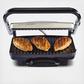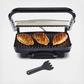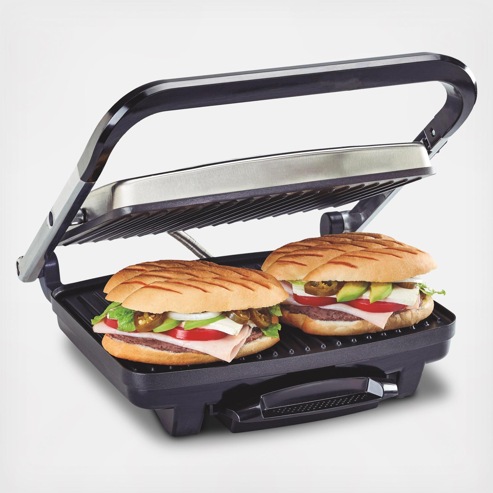 Create tasty sandwiches with this panini press/indoor grill. Large 95 square inch nonstick cooking surface. Floating lid ensures even heating. Dishwasher safe drip tray. Stainless steel finish. Lid-lock feature for easy upright storage. Power and preheat lights. Includes spatula.