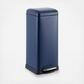 This semi-rectangular 8-gallon trash can hides plenty of capacity within its slim size, making it a great choice for home offices, craft rooms, laundry rooms and other small spaces. Featuring a profile hinge and retro silhouette -- its sleek design allows it to sit close to a wall or cabinet. Its design features don't end there -- its finished in powder-coated stainless steel, features a steel step-on mechanism that allows for smooth openings and closings (no pinched fingers!), and has a removable plastic liner that makes bag changes a cinch.