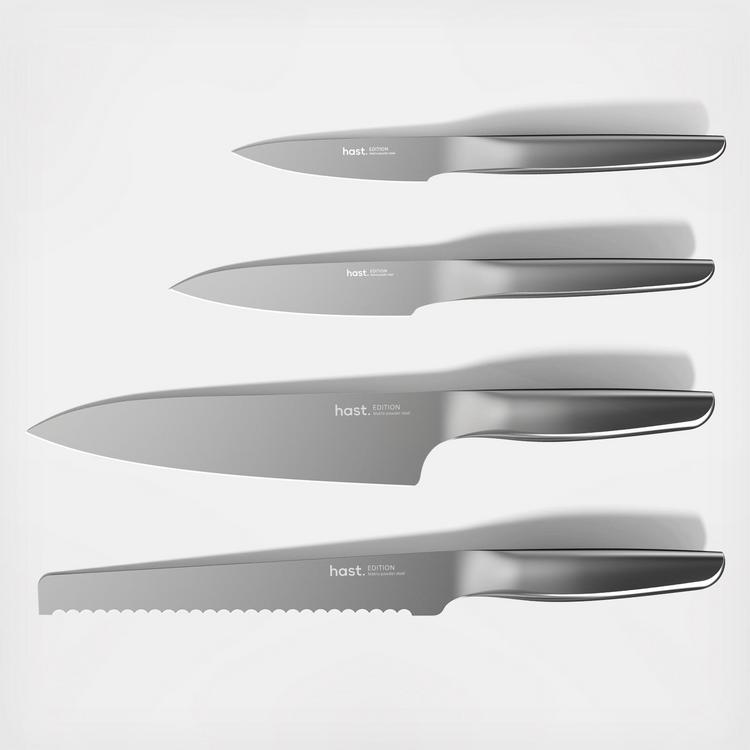 The edition series Modern Knife Set gets your cooking well covered. These four modern knives are perfect for a cook-together session with loved ones. Hast knives are made to the standard of high-carbon Japanese masterchef blades, with ultra thin blades & ultra small edge angles. Hast knives have edge angles smaller than 13° on each side and blade thickness of 0.3mm for the most precise slice. This next-generation steel is the driving force behind Hast knives’ superior sharpness, durability, and ease of use.