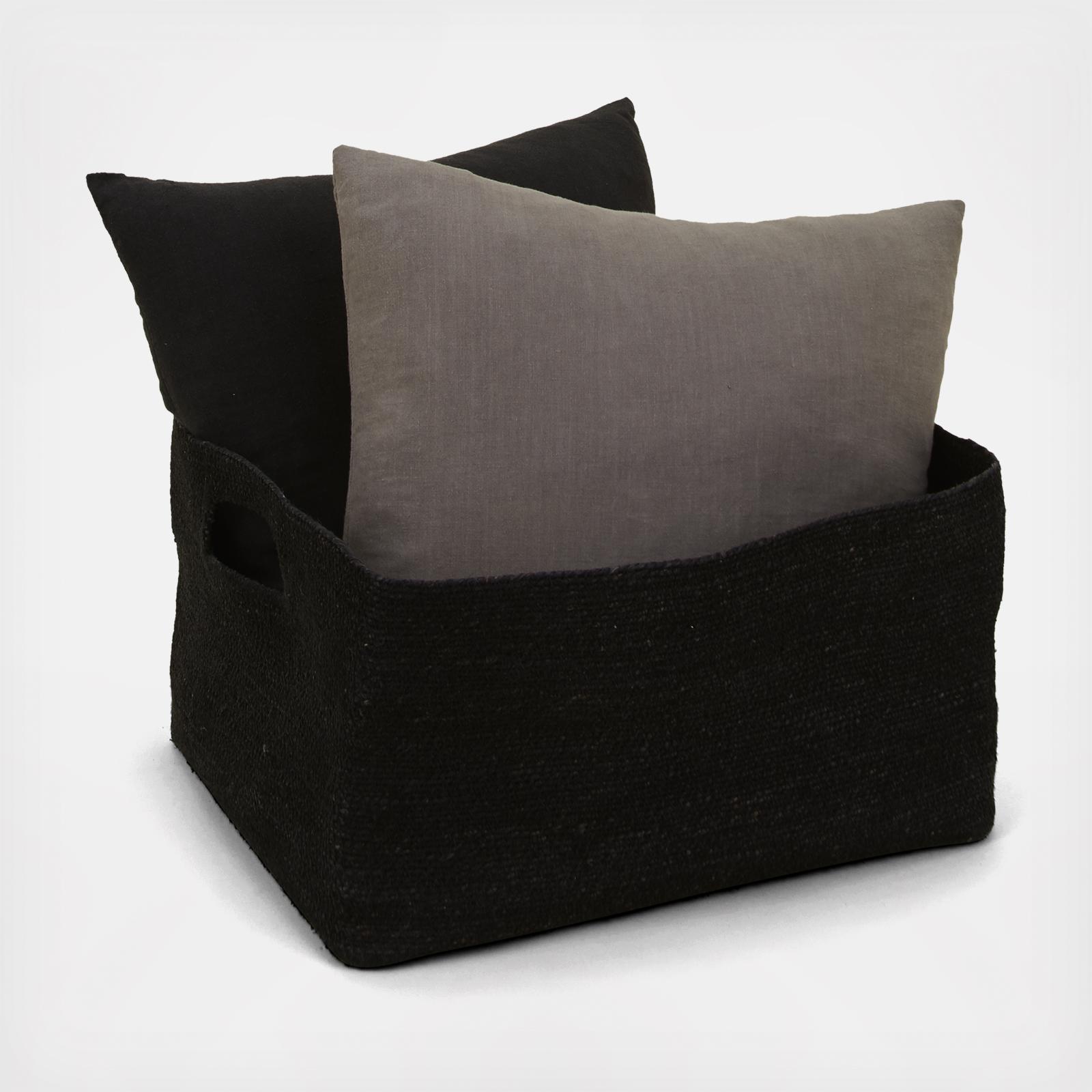 A woven basket for keeping things out of sight. Handwoven sweetgrass. You'll love this size for dog toys, fireplace accessories, or as an extra chic wastebasket. Choose from the natural sweetgrass or colorways achieved by braiding sweetgrass with our favorite HNY hues.