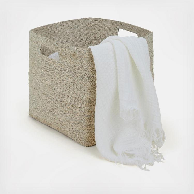 A woven basket for keeping things out of sight. Handwoven sweetgrass. You'll love this size for dog toys, fireplace accessories, or as an extra chic wastebasket. Choose from the natural sweetgrass or colorways achieved by braiding sweetgrass with our favorite HNY hues.