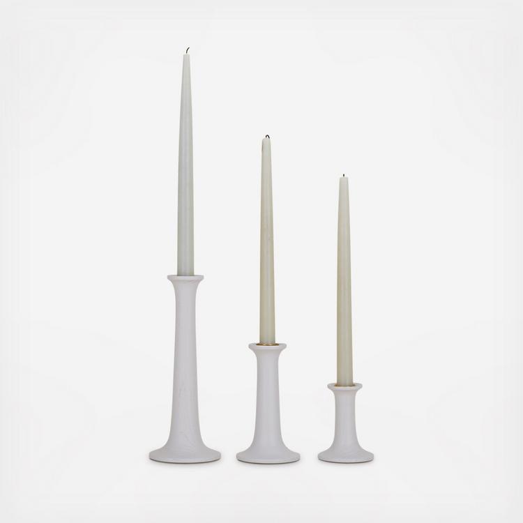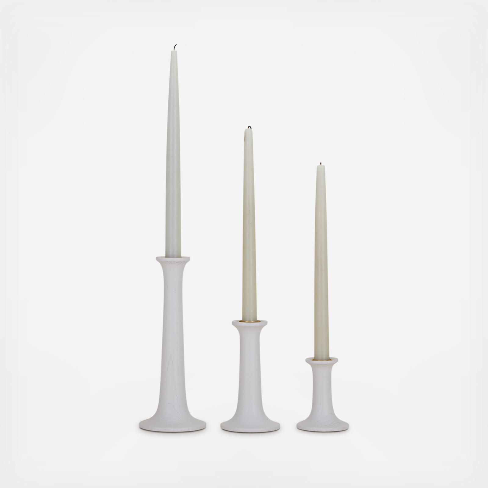 The Simple Wood Candle Holders are turned from solid ash and then stained. Each holder comes with a gold finish candle cup for easy cleaning. You will love these mixed together or with metal Simple Candle Holders, and beautiful mixed with vintage. An easy update to your table or mantle!