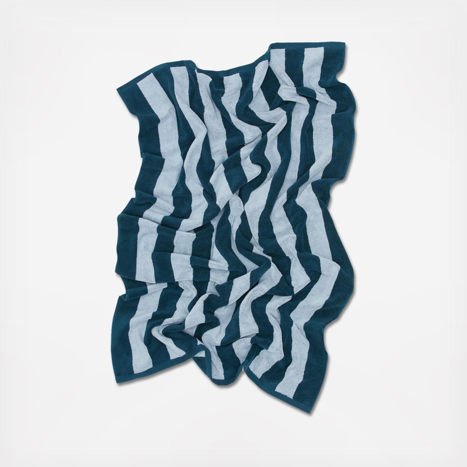 For the beach, the bath, or the pool. A go-to striped reversible towel to take anywhere. Made from 100% cotton terry for luxurious softness + absorbency. Oeko-Tex Standard 100 certified. Generously-sized + finished with a loop for easy hanging.