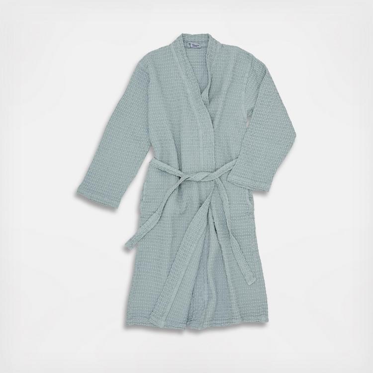 Part of the Hawkins New York Simple Waffle Collection, you're going to want to live in this robe! With a 100% cotton waffle weave, this robe is roomy and genorous and comes in two sizes with a looped tie for cinching. Oeko-Tex Standard 100 certified. 370 gsm weight. Matches perfectly with the Simple Waffle Slippers (sold separately).