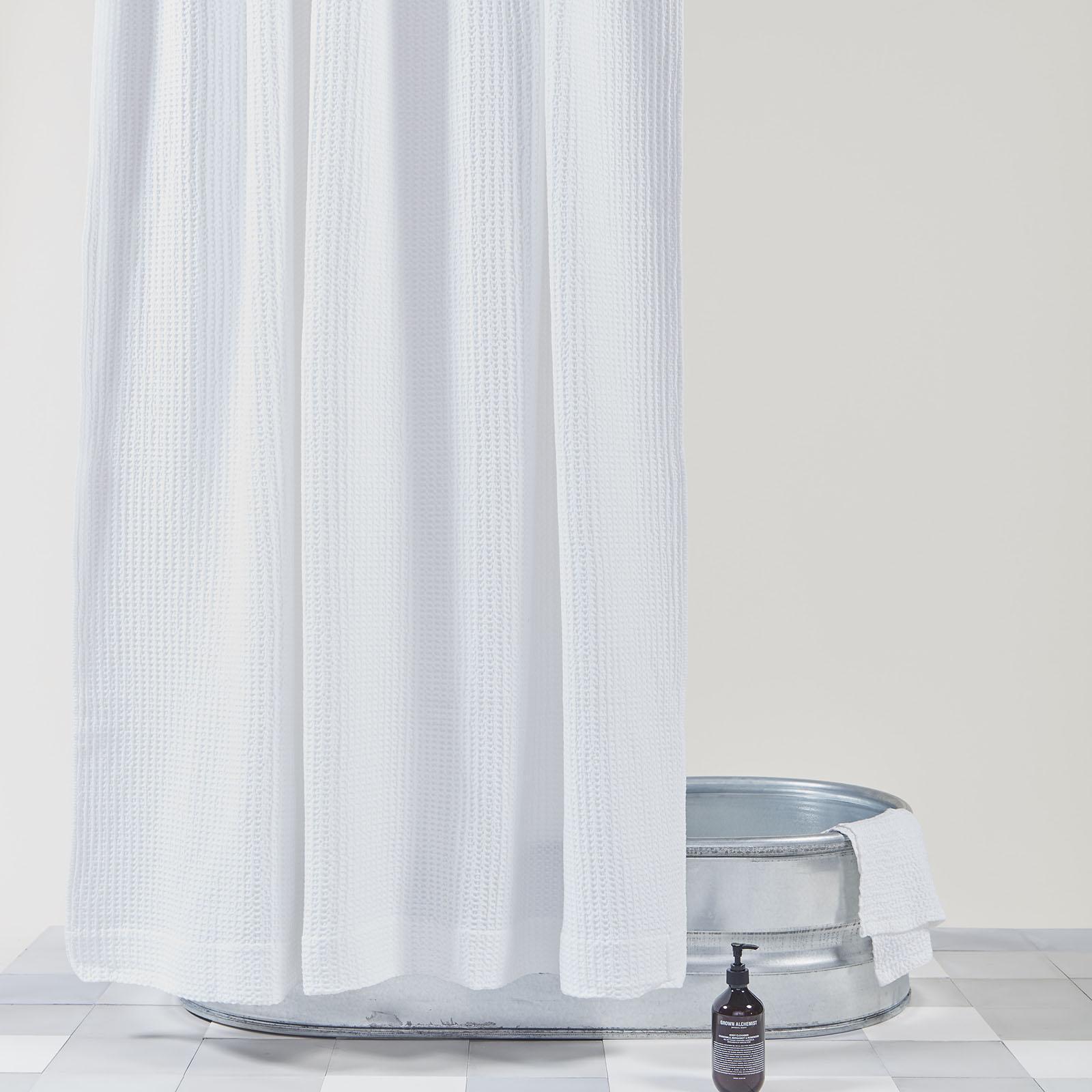 The newest and biggest addition to waffle-weave line-up: The Waffle Shower Curtain. With a one-two punch of color and texture, you can finally ditch the vinyl for something that looks as good as it feels.