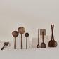 The Simple Walnut Spoon Collection is hand carved by artisans in Morocco. The nature of the wood and variations in execution make each piece solely unique. The darker wood stains less, patinas over time, and will be your ‘go-to’ serving and cooking tools.