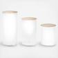 The Simple Storage container is made of glass with an oak lid. This container is perfect for storing dry goods, organizing bathroom essentials or converting into a terrarium!