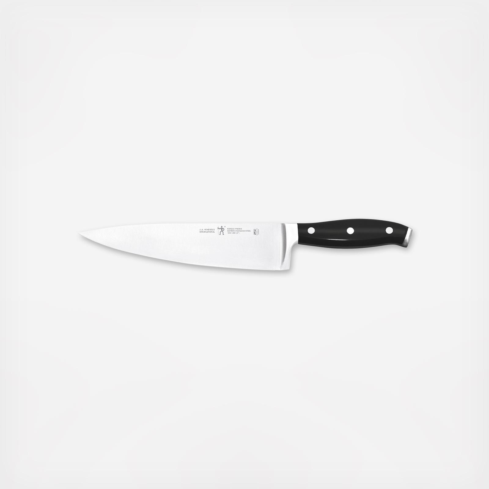 The Henckels International Forged Premio Chef's Knife allows you to cut with confidence. Chop carrots, dice onions, mince garlic and slice steak with this versatile all-rounder. Stamped with the single man Henckels' logo, this Halberdier symbolizes Forged Premio's superb quality at a remarkable value.