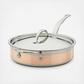 For ground breaking innovation, ultimate performance and modern elegance, equip the kitchen with a CopperBond™ Induction Copper Saute Pan. With its wide surface area and vertical sidewalls, this versatile saute pan is ideal for searing, browning, simmering, braising and one-pot meals. Handcrafted in Italy to meet the highest quality standards, the new CopperBond collection combines the unsurpassed conductivity, responsiveness and beauty of copper with the durability and cleanability of stainless steel for superior cooking performance on all cooktops, including induction.